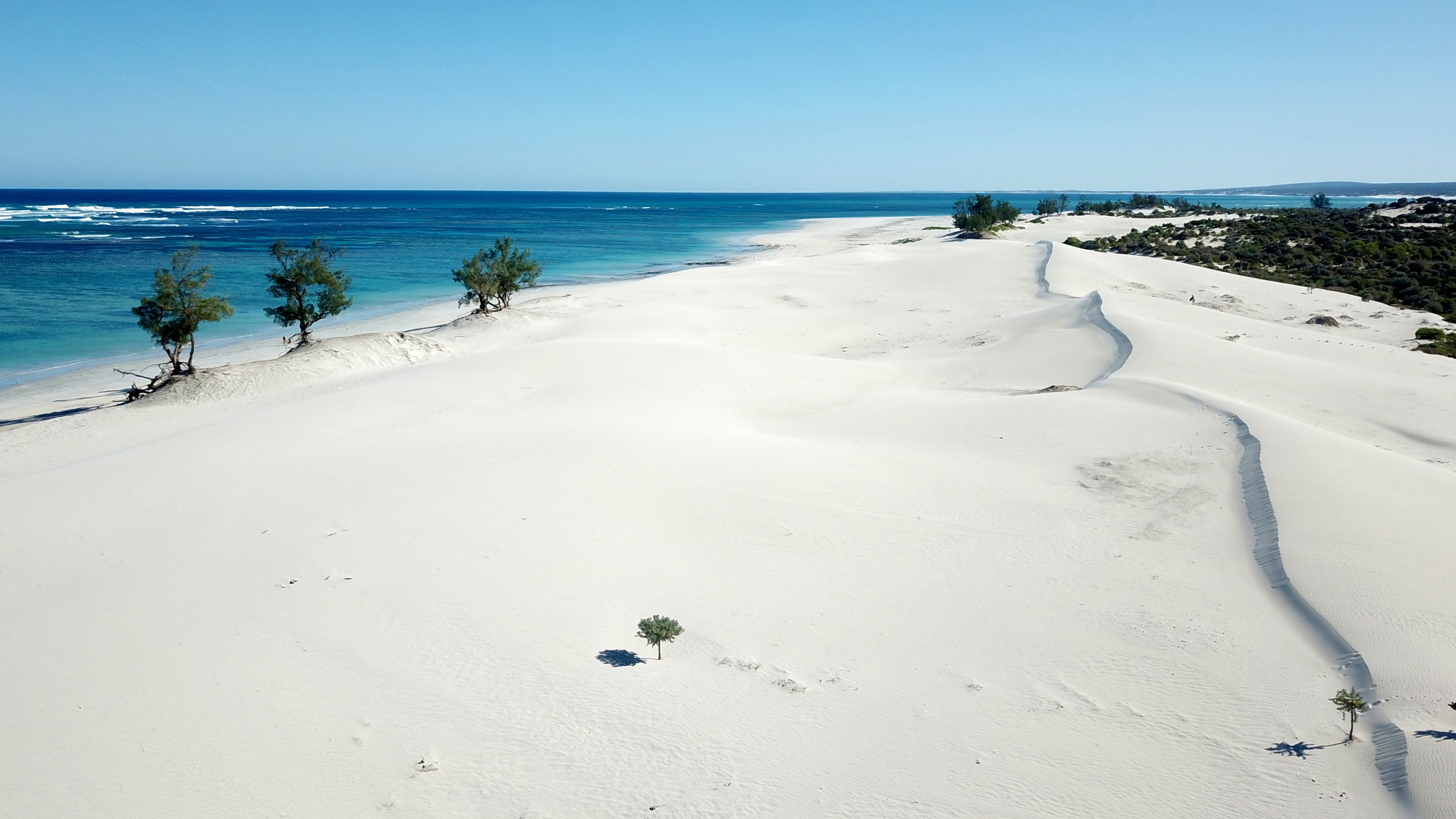 Mit Geländefahrzeugen gehts auf roten Sandpisten entlang der Küste immer Richtung Süden, wo weißer Sandstrand in den klaren Ozean mündet. In der trockenen roten Landschaft gedeihen Dornenwälder und Baobabs. Hier sind auch unzählige Schildkröten und Lemuren zuhause. Ein besonderes Highlight dieser Reise ist der Besuch am Salzsee, wo Flamingos in ihrem natürlichen Lebensraum zu beobachten sind.